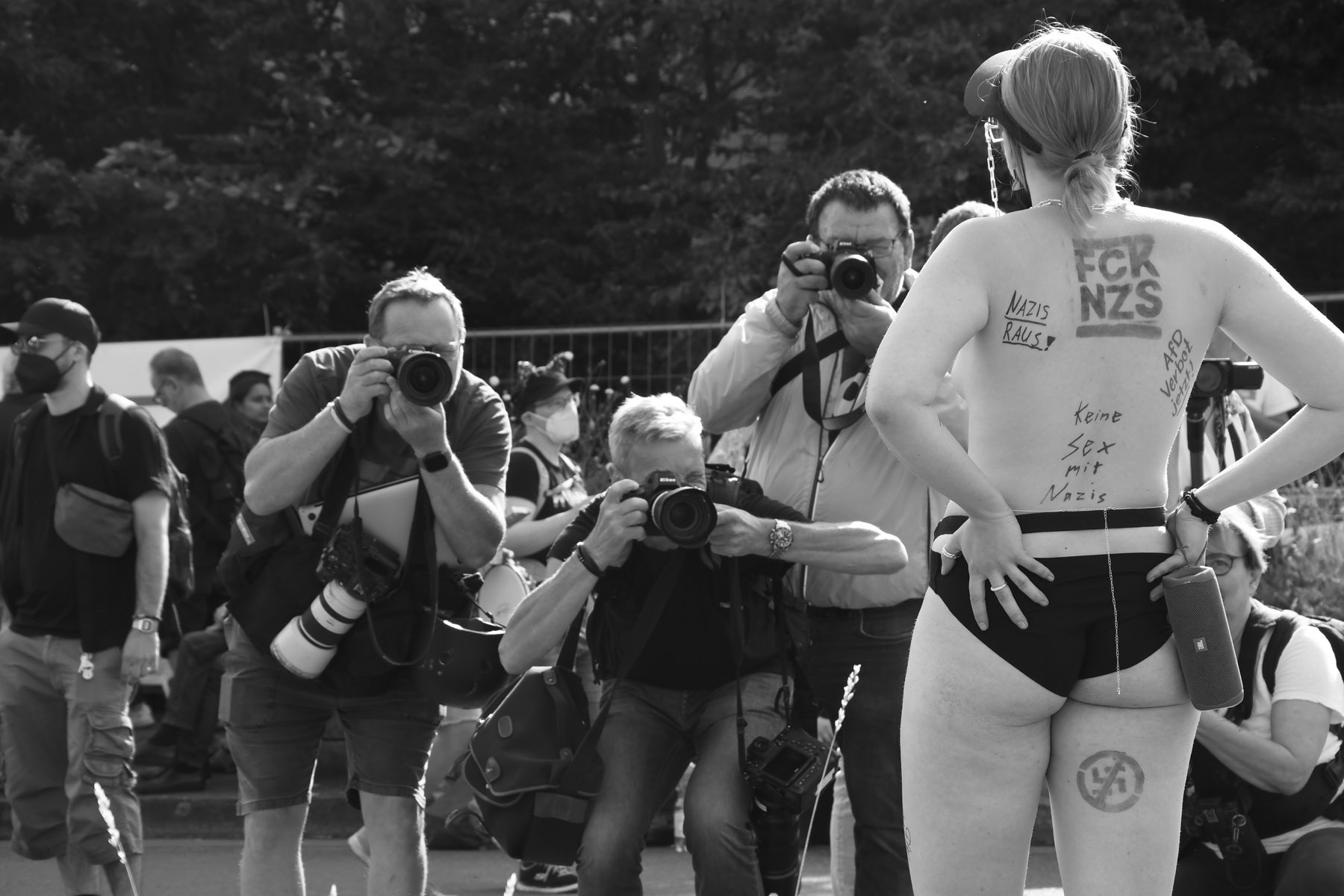 Die Bildserie „Arbeitskampf“ dokumentiert den Widerstand der Stahlarbeiter im Ruhrgebiet in einer Phase tiefgreifender industrieller Umbrüche. Inmitten der grünen Transformation und globaler Marktdynamiken rückt die fotografische Arbeit den Konflikt um Arbeit, Würde und Mitbestimmung in den Fokus. Die Aufnahmen verstehen den Protest nicht nur als industriellen Fachkonflikt, sondern als Ausdruck einer sozialen Spannung, die weit über die Werkstore hinausreicht.